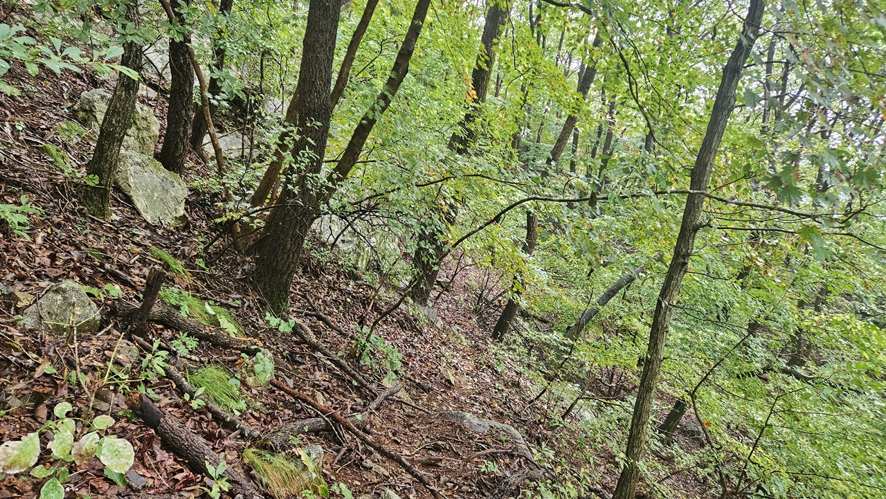 지난 번에도 시도해봤지만 진입불가라 오늘은 일단 뚜렷하게 이어지는 직진 방향 산길이 어디로 이어지는가 궁금해서 표식을 따라가 보기로...