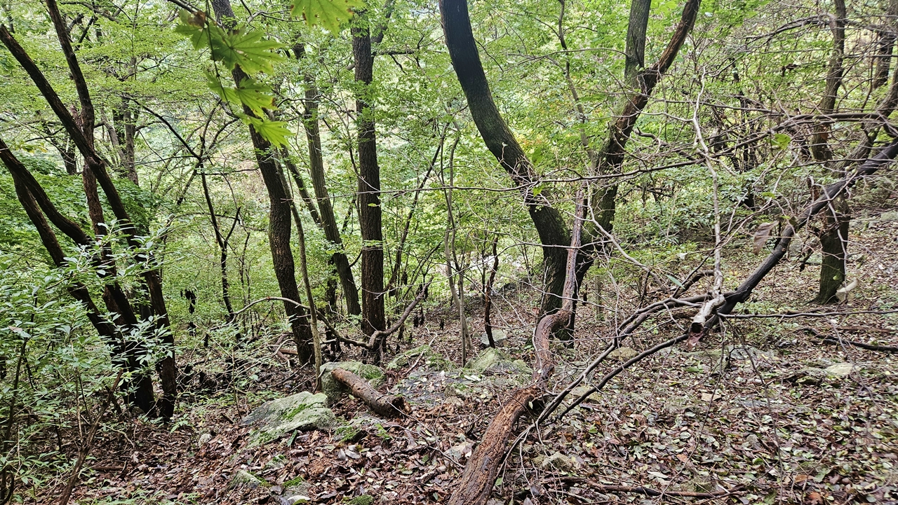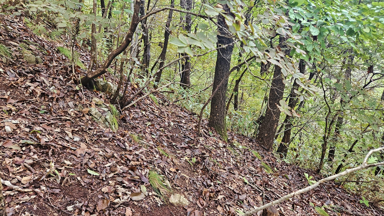중간중간 산길 위아래로 臺가 있음직한 바위지대가 보이면 찾아가 보았지만 헛걸음이다.
