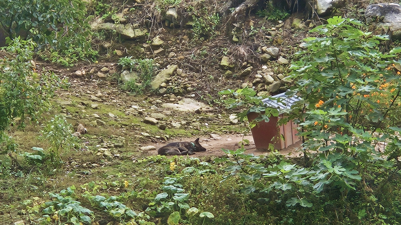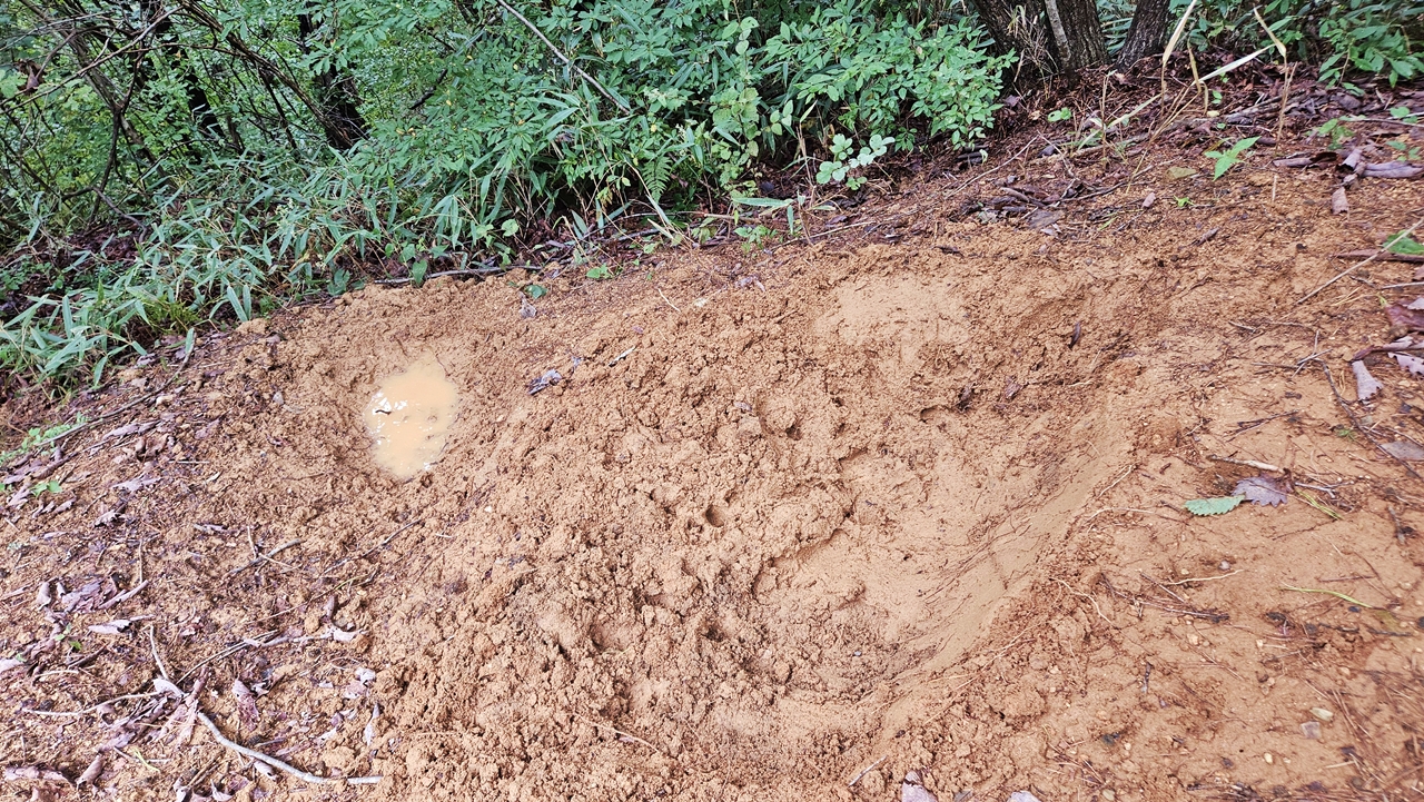먹을 게 없는지 두랭이골에 사는 멧돼지가 묘역 주변을 피훼졌다.