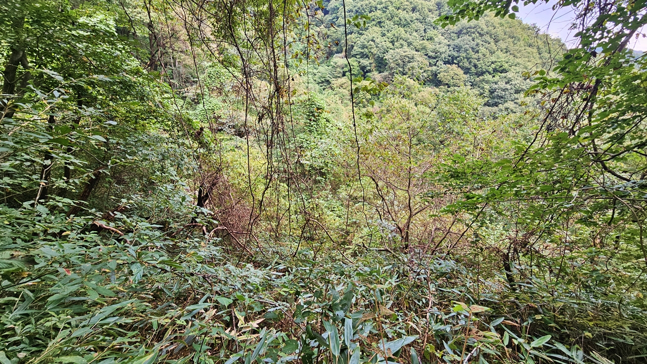 파묘를 지나 두랭이골로 진입을 다시 시도해 보는데 잡목과 덩굴 산죽이 삼박자를 이룬 정글이라 아무리 용을 써봐도 도저히 진입불가다.