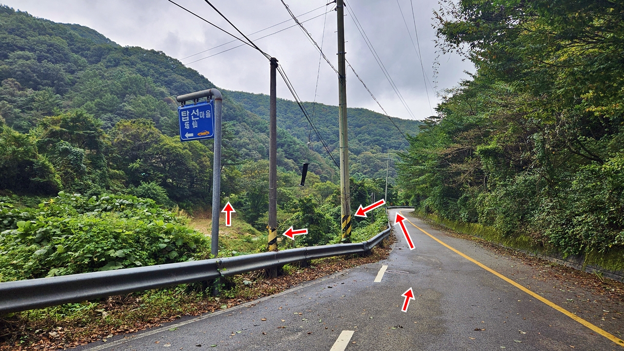 지난번과 같이 탑선마을 입구 버스 정류장 근처에 주차하고 도로 아래 능선 진입로로 초입을 잡았다.