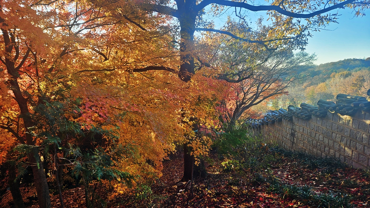 곧 해가 질 기미지만 제일 좋아하는 조경단 담벽 단풍을 보고가기로...