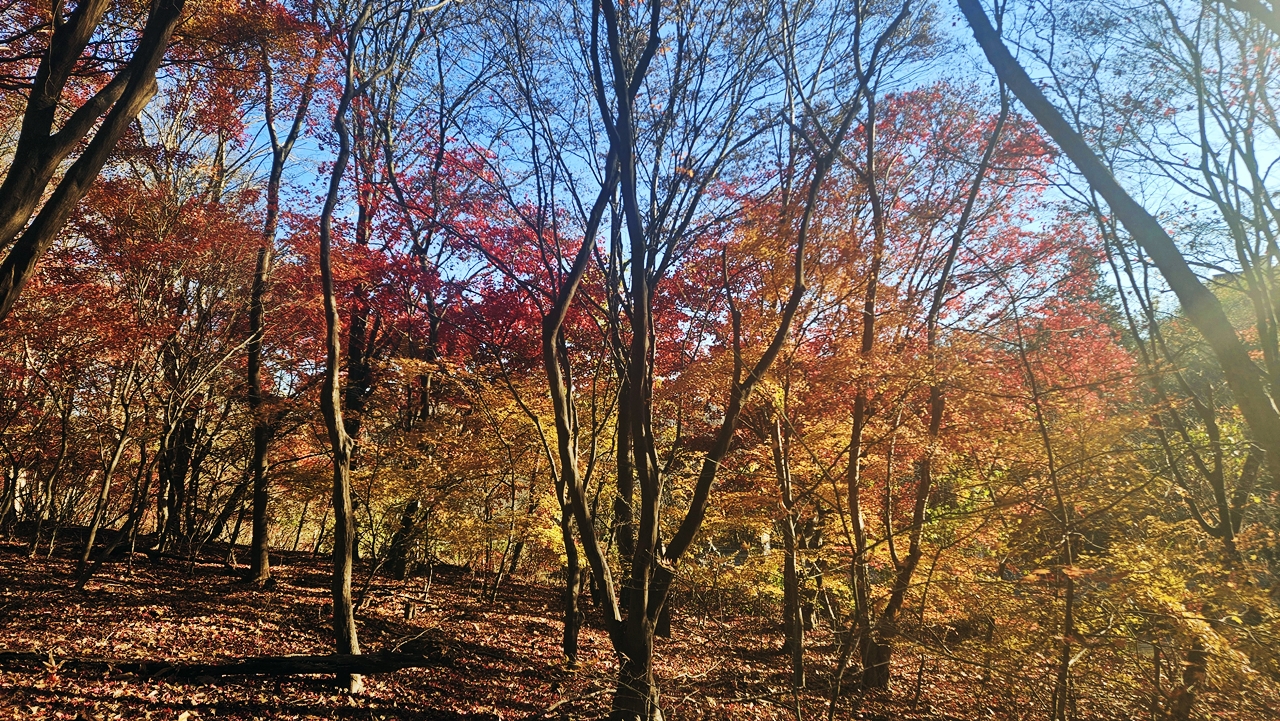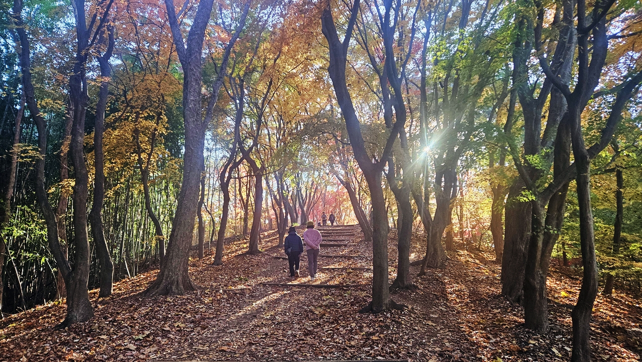 낼 모레가 12월임에도 최 명희묘역에서 건지산 서봉으로 가는 능선은 아직 단풍이 완전히 물들지 않았다.